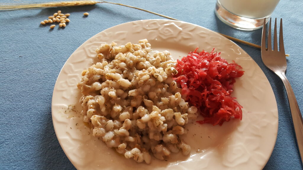 Gerstengericht mit Buttermilch und Dill